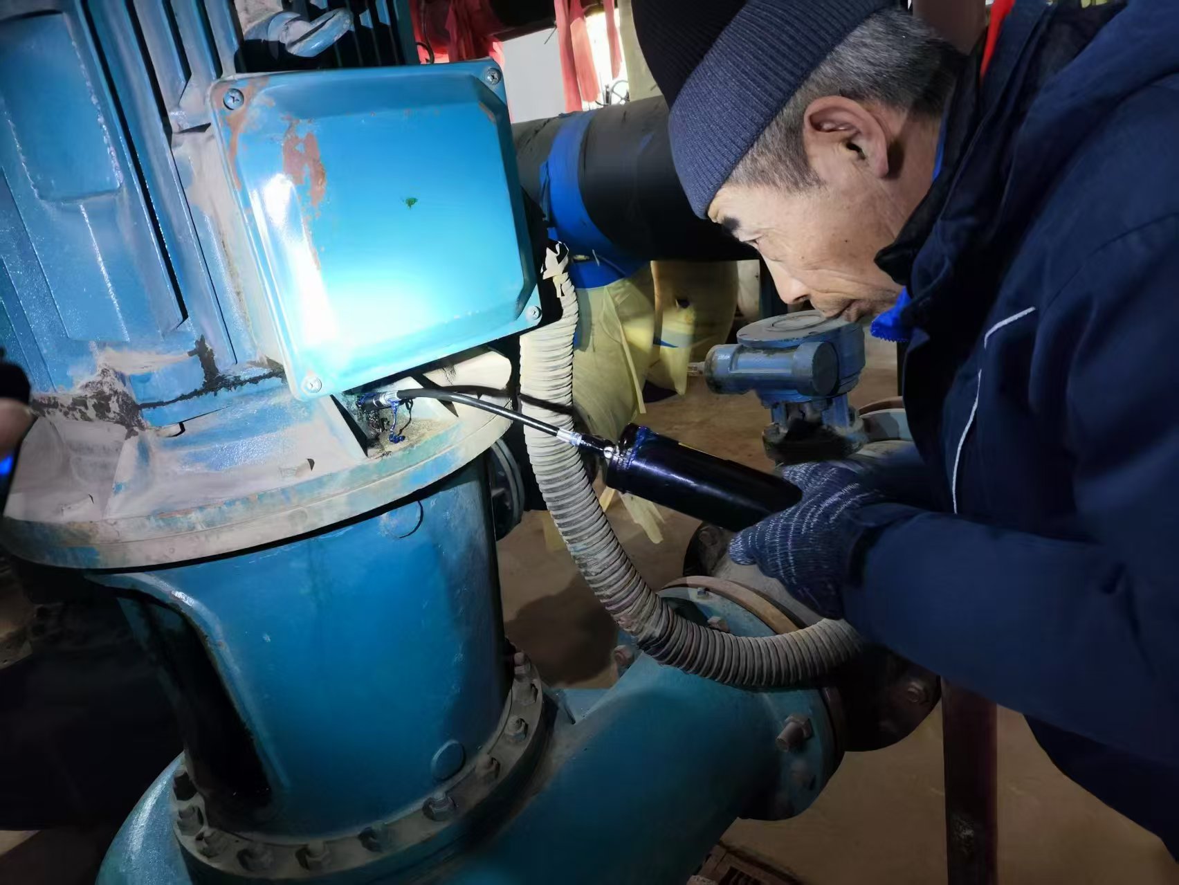 2024年12月23日晚上8點多,萬惠站內(nèi)失水掉壓,蘇昭和同事們立即沿線進(jìn)行排查,找到2處跑水點。在緊張的搶修過程中,蘇昭白天配合挖機(jī)作業(yè)、抽排污水,晚上協(xié)助檢修所員工下地溝為DN300的管網(wǎng)打上2個大抱卡。經(jīng)過一天一夜的連續(xù)奮戰(zhàn),終于在24號凌晨2:00完成了搶修和回填,92個商鋪恢復(fù)了供熱。由于天氣寒冷,蘇昭和同事們身上結(jié)出了冰碴,手也凍僵了?!懊ζ饋砭皖櫜涣四敲炊嗔耍瑔栴}解決了才能松一口氣?!彼f。