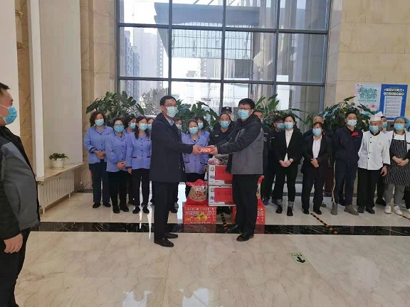 2月10日上午,城發(fā)公司副總經(jīng)理、物業(yè)公司董事長趙永強,物業(yè)公司黨支部書記娜仁、經(jīng)理史濤等一行走訪慰問了春節(jié)前夕仍堅守在工作一線的員工們,為他們送去節(jié)日慰問品,并致以真摯的節(jié)日祝福。