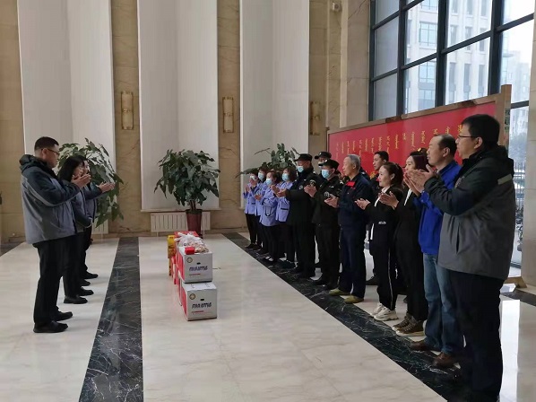 125日恰逢北方小年,城發(fā)物業(yè)公司黨支部書記娜仁、經(jīng)理史濤、黨支部副書記馬軍民等一行慰問組成員赴各在管項目走訪慰問,向春節(jié)期間堅守在物業(yè)工作崗位第一線的員工致以親切慰問,并為堅守崗位的員工送去了水果、餃子、熟食等慰問品。