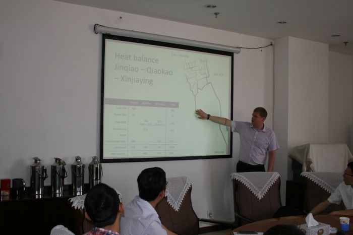 在為期半天的會議中,城發(fā)公司副總經(jīng)理吳利勤向?qū)<医榻B了項目的進展情況和下一步工作計劃,供熱專家邁克爾演示了其水力分析和計算結(jié)果,城發(fā)公司相關(guān)技術(shù)人員與各專家就邁克爾的分析和計算進行了討論和交流。