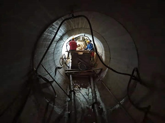 工程負(fù)責(zé)人趙永軍介紹,工程采用頂管方式橫穿河道,穿越東河的距離是190多米,先通過頂管方式將供熱管線的套管鋪設(shè)過河,將套管內(nèi)的泥沙運空,再鋪設(shè)供熱管道,套管內(nèi)徑是2.4米、外徑達(dá)到了2.88米,此次沉井頂管工程,僅施工費用就達(dá)1000多萬元。目前是呼市地區(qū)頂管距離是最長、施工難度最大的工程。為了按期完工,現(xiàn)工人們實行24小時三班倒,每個班是8個人,人停機(jī)器不停,平均每天6根管進(jìn)度,即推進(jìn)15米,預(yù)計需要1個月的時間完成頂管任務(wù)。