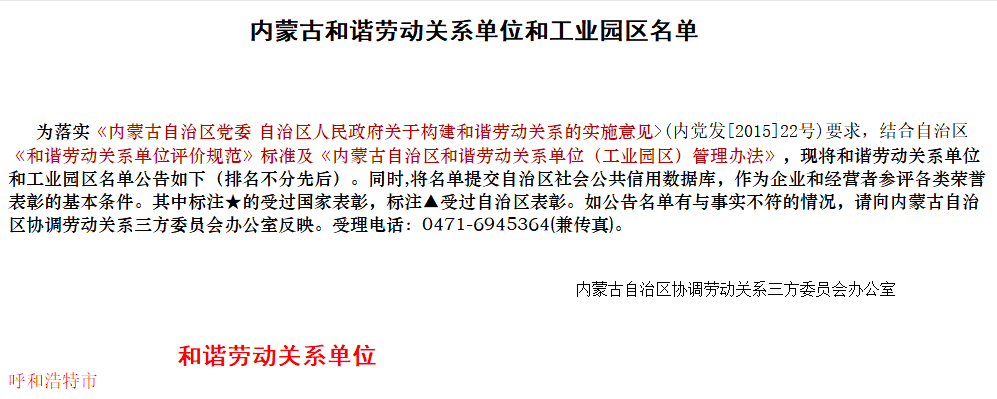 城發(fā)公司成功通過內(nèi)蒙古自治區(qū)勞動關(guān)系三方委員會的審核,被授予內(nèi)蒙古自治區(qū)和諧勞動關(guān)系單位的光榮稱號。