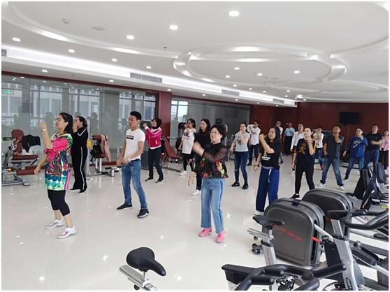 9月6日上午8時(shí)30分,激情洋溢的樂曲準(zhǔn)時(shí)在城發(fā)集團(tuán)19樓健身房響起,城發(fā)公司的20余名干部職工隨著鏗鏘有力的節(jié)拍,舒展身姿,精神抖擻地跳起了健身操。這是城發(fā)公司工會為備戰(zhàn)市工間操比賽作的一次賽前集訓(xùn)。