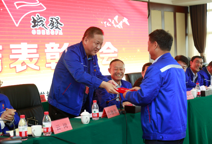 會上,城發(fā)公司班子成員為獲得先進(jìn)集體、先進(jìn)生產(chǎn)(工作)者、優(yōu)秀管理人員、先進(jìn)黨支部、優(yōu)秀黨務(wù)工作者和優(yōu)秀共產(chǎn)黨員的職工代表進(jìn)行頒獎并予以鼓勵。在2018年生產(chǎn)、經(jīng)營、建設(shè)、管理工作中,授予王觀法同志2018年度優(yōu)秀高層管理人員榮譽(yù)稱號;授予胡日查等15名同志2018年度優(yōu)秀中層管理人員榮譽(yù)稱號;授予橋靠分公司等17個單位2018年度先進(jìn)集體稱號;授予劉堅等79名員工為2018年度先進(jìn)生產(chǎn)(工作)者稱號。
