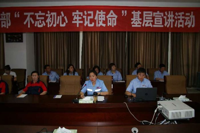 6月17日,城發(fā)物業(yè)公司黨支部開展“不忘初心 牢記使命 爭做最美物業(yè)人”基層宣講活動?;顒佑晌飿I(yè)公司黨支部書記娜仁同志主講,物業(yè)公司基層的員工代表及合同制員工共計82人參加了宣講活動。